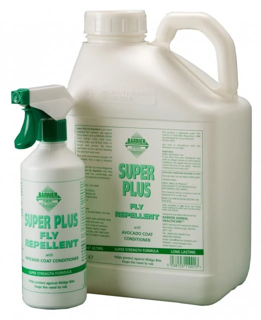 A super high strength formulation, Barrier Super Plus Fly Repellent is a 100% natural solution to even the most persistent bloodsucking and nuisance insects. Guarding against midges, bots, houses, stables, blackflies and horseflies, Super Plus Fly Repellent not only protects but also soothes and calms irritated areas.