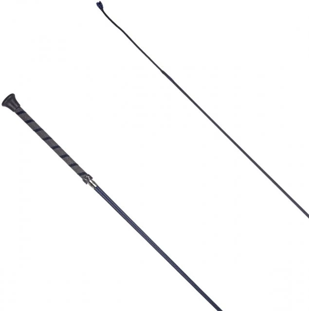 Rubber Thread Handle Dressage Whip is a smart choice for everyday schooling and dressage training. Made in England, this whip features a braided design with lash, plus a comfortable non-slip rubber spiral handle which is finished with a plastic cap and collar