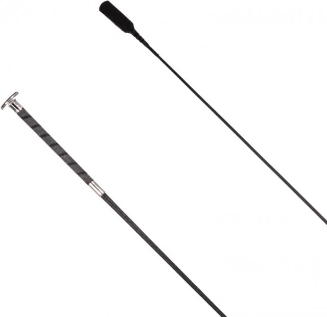 Smart and traditional whip suitable for everyday schooling and dressage training. Made in England, this whip features a braided design with lash. A comfortable non-slip rubber spiral handle is finished with a metal cap and collar. Length 120cm