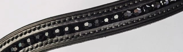 A browband designed for the Fairfax Performance Bridle with inlaid black Swarovski crystals in quality Sedgwick leather and hand stitched in Walsall.