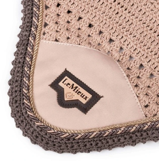 Supporting the signature LeMieux Loire embossed metal motif these luxurious fly hoods are a stylish addition to the collection. Beautifully made from three-way hand knitted crochet with a luxurious satin fabric front piece and soft stretch Lycra ears.