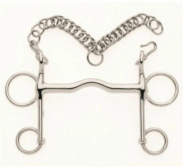The Loose Ring Show Pelham has an extra loose ring which is connected by a fixed link on the snaffle ring, which is also supposed to give a more direct contact to the mouthpiece than that of a normal Pelham.
